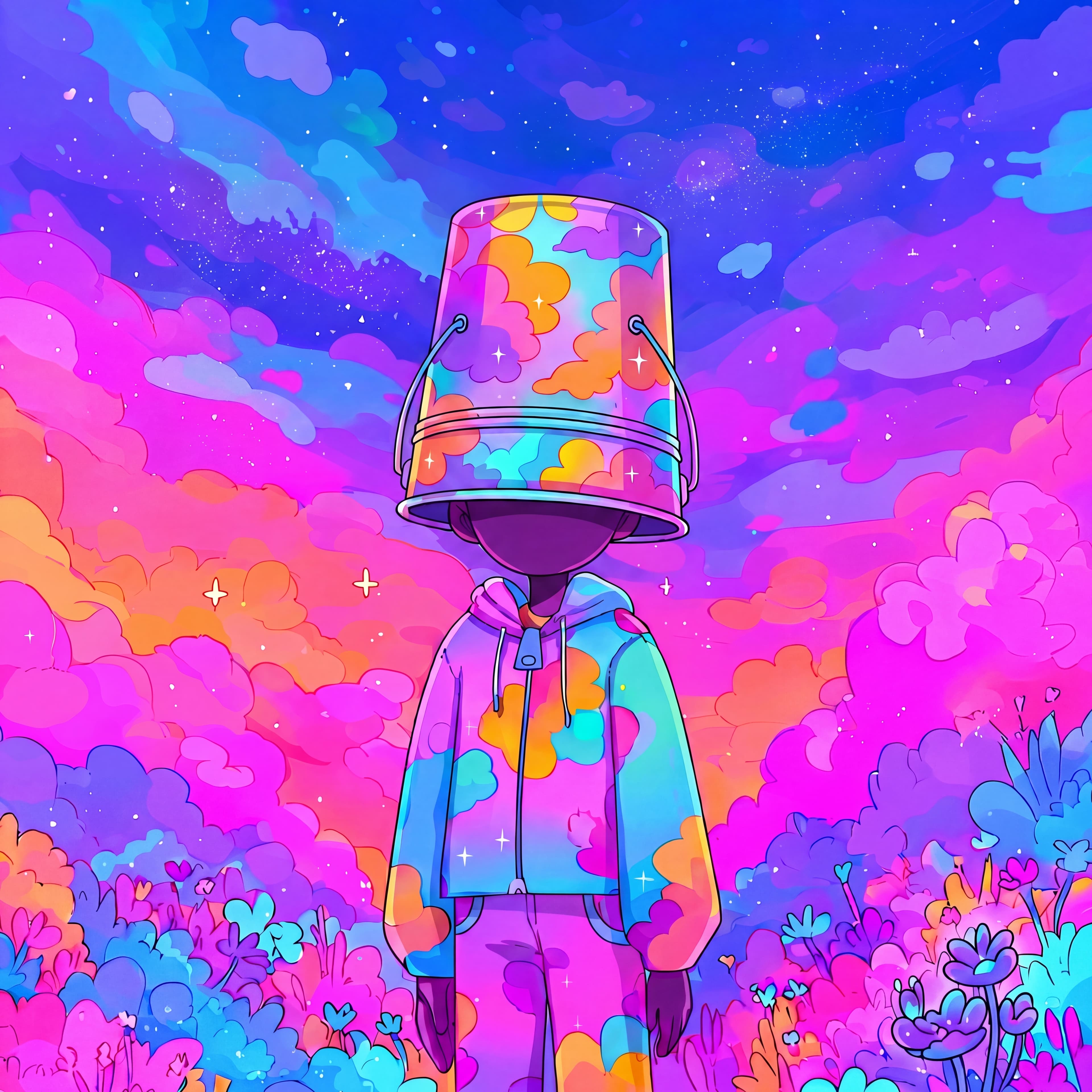 “It was a Saturday — the kind of lazy, sun-drenched afternoon where nothing happens and everything changes. On a shelf behind a stack of warped vinyl records, half-hidden under a dust cloth that might've been white once — a bucket hat. The moment his fingers touched the fabric, color detonated. Not slowly. Not like a sunrise. Like a drop — like the moment a beat kicks in and the whole track transforms.”